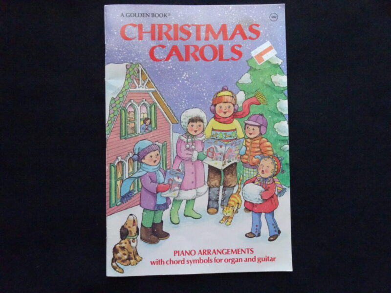 Christmas Carols is Big Golden Book #2979 and is a 1981 printing by Eugenie.  It features 20 carols with piano arrangements and chord symbols for organ and guitar.  No marks except one song has transposed chords written in it.  Just 1 like this.