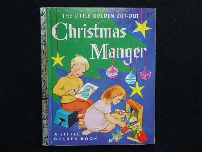 Christmas Manger is a 1953 C printing of book #176 by Jane Werner and pictures by Steffie Lerch. Excellent condition with no marks and nothing has been cut out. BUT, the inside cover has a stamp that shows this book was in Golden’s official library archives. A piece of Golden history. Just 1 like this.