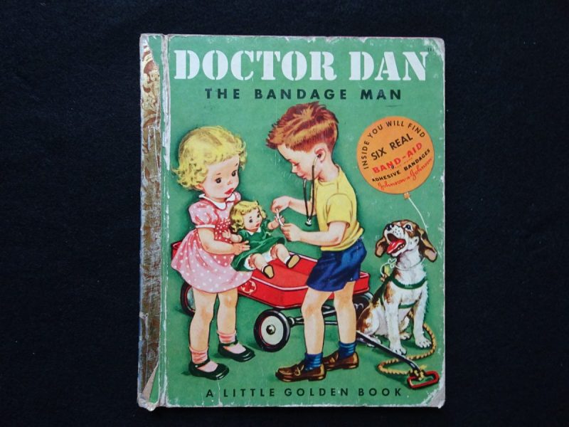 Doctor Dan the Bandage Man is a 1950 A 1st Edition of book #111 by Helen Gaspard and pictures by Corinne Malvern. Inside cover says to Gary from Lorie Ann 1951. Cover shows some wear and the bandages are gone, but inside is very nice AND it is 28 pages. Just 1 like this.