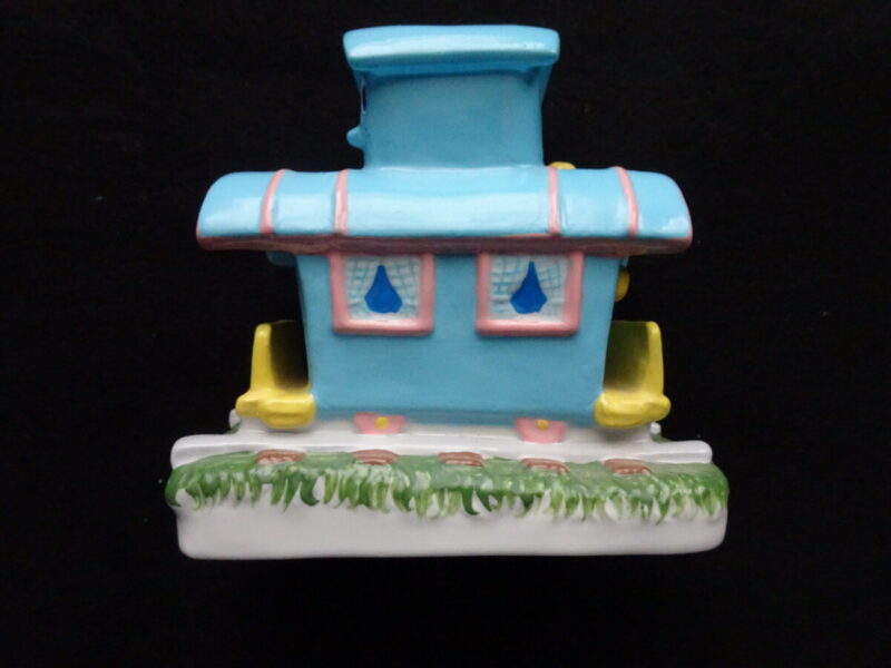 I have a Katy Caboose Enesco Figurine from 1989 that is new with original box. The box reads Katy Caboose Porcelain Figurine #410349. This used to be part of a Little Golden Bookland train set with Tootle the Train, Kay, Poky Little Puppy, Baby Brown Bear, and possibly a couple more character coaches. Measures roughly 4.25″ tall. A part of Golden Book history.  Just 1 like this.