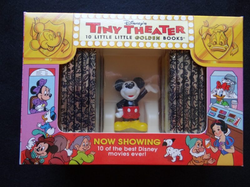 Little Little- Disney Tiny Theatre is a 10-book set with a Mickey Mouse figurine. This is a brand new set in a really cute package from 1993. The titles are Aladdin, Bambi, Beauty and the Beast, Dumbo, Little Mermaid, 101 Dalmations, Peter Pan, Pinocchio, Prince and the Pauper, Snow White. Very hard to find and I only have 1 left.