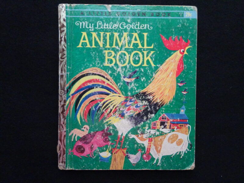 My Little Golden Animal Book is a 1962 A 1st Edition of book #465 by Elizabeth MacPherson and pictures by Moritz Kennel.  No marks inside but cover shows some wear.  Cute rhyming book.  Just 1 like this.