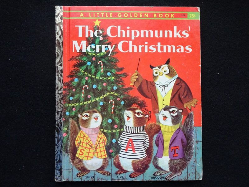 The Chipmunks’ Merry Christmas is a 1959 B printing of book #375 by David Corwin and pictures by Richard Scarry. The name Wendy is on the inside cover, but no other marks. Very nice shape. Just 1 like this.