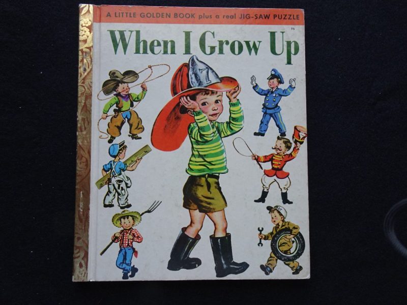 When I Grow Up is a 1950 A 1st Edition of book #96 by Kay and Harry Mace and pictures by Corinne Malvern. No marks, excellent condition. 8 of the original 11 pieces of the jigsaw puzzle in the back are still here! Very rare find. Just 1 like this.